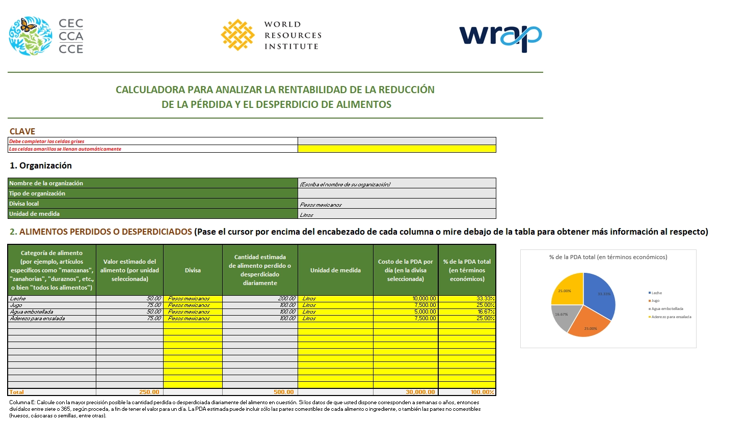 Asimismo, nuestra calculadora de costos para la empresa le permitirá determinar fácilmente el costo de la PDA en su organización, al igual que el posible ahorro derivado de intervenciones dirigidas a reducir la cantidad de alimentos perdidos o desperdiciados.