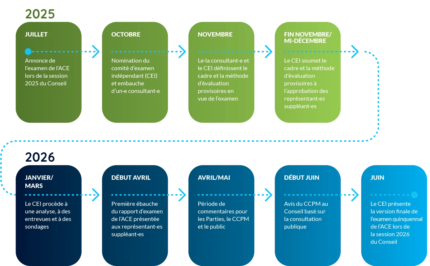 Calendrier de l’examen quinquennal de la mise en œuvre de l’ACE